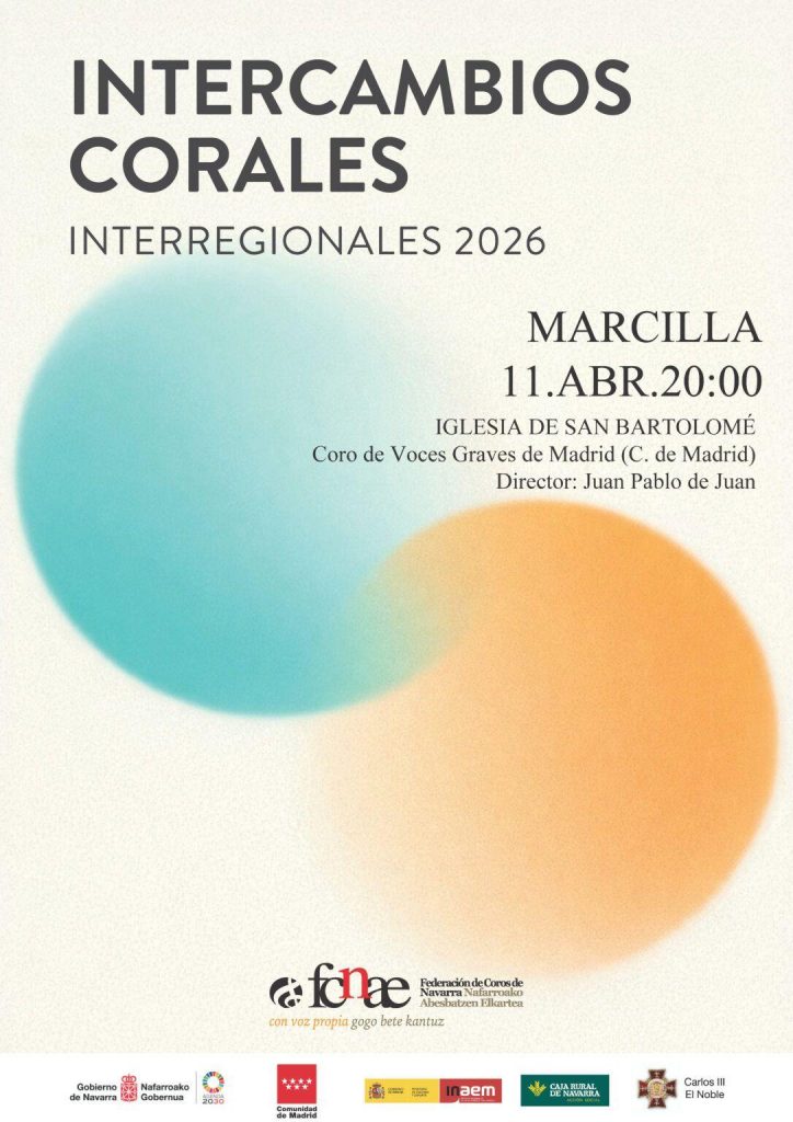 La Iglesia de la Asunción de San Bartolome (Navarra) acogerá el día 11 de abril a las 20.00 horas, una nueva edición de las Jornadas de Música Coral organizadas por la Federacion Coral de Navarra. Entrada libre y gratuita.
